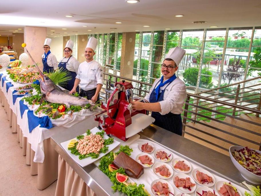 • Extra Full Board (pije të zgjeruara në Main Bar/restaurant/beach bar; kokteje nga 19:30; peshqir plazhi personal 12+ me ndërrim pas javës së parë; pije by-glass deri në 14:00 ditën e largimit) Me pagesë