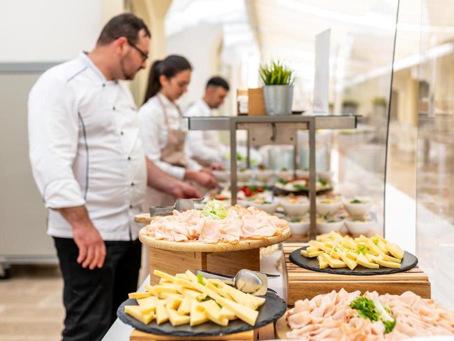 - 2 salla ngrënieje me ajër të kondicionuar, shërbim “buffet”, tavolinë e caktuar për gjithë qëndrimin.
